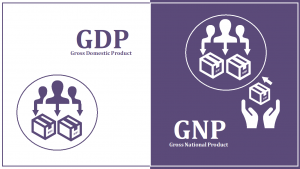 ومن ذلك يختلف الناتج المحلي عن الناتج القومي الإجمالي الذي يرمز له GNP الذي يحسب من خلاله قيمة السلع والخدمات المنتجة بغض الطرف عن ما إذا كان الإنتاج محلياً أو خارجياً.