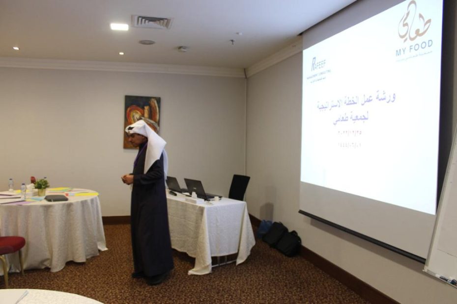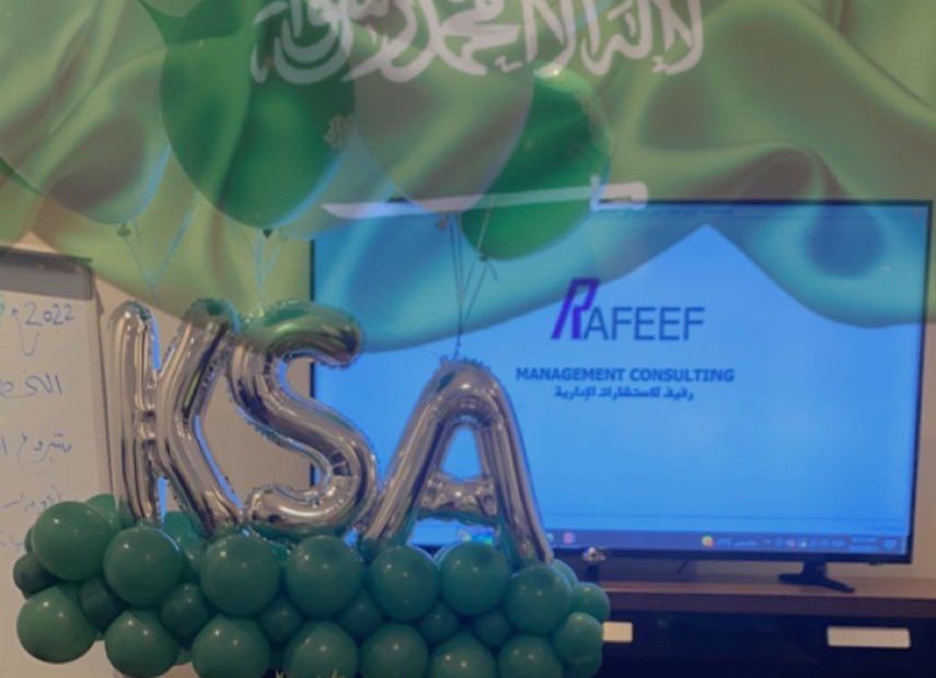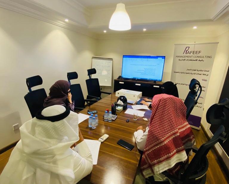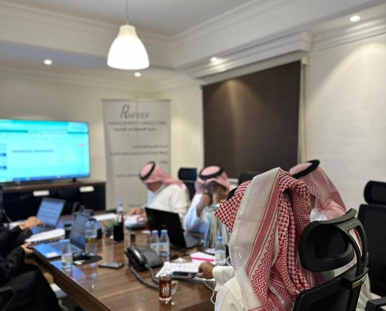 جانب من صور الفريق الاستشاري والفريق المشرف على الدراسة بقيادة الدكتور العبيد الحسين والدكتورة الجوهرة الفوزان مع اعضاء الفريق في شركة رفيف .
