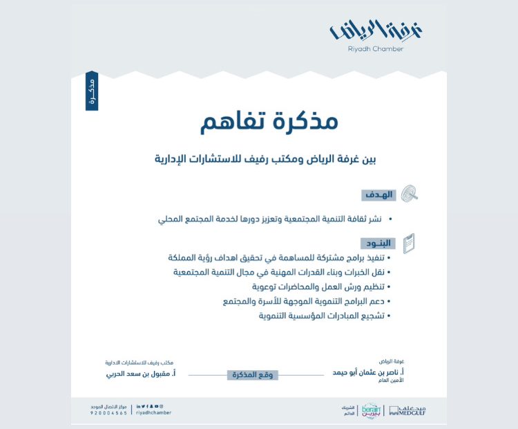 مذكرة تفاهم بين جمعية المكفوفين و شركة رفيف للاستشارات الإدارية